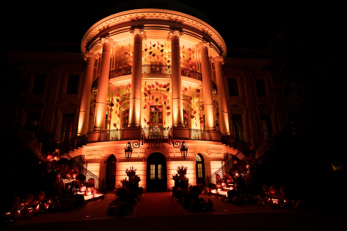 President Donald Trump and First Lady Melania Trump participate in a Halloween event on the South Lawn of the White House