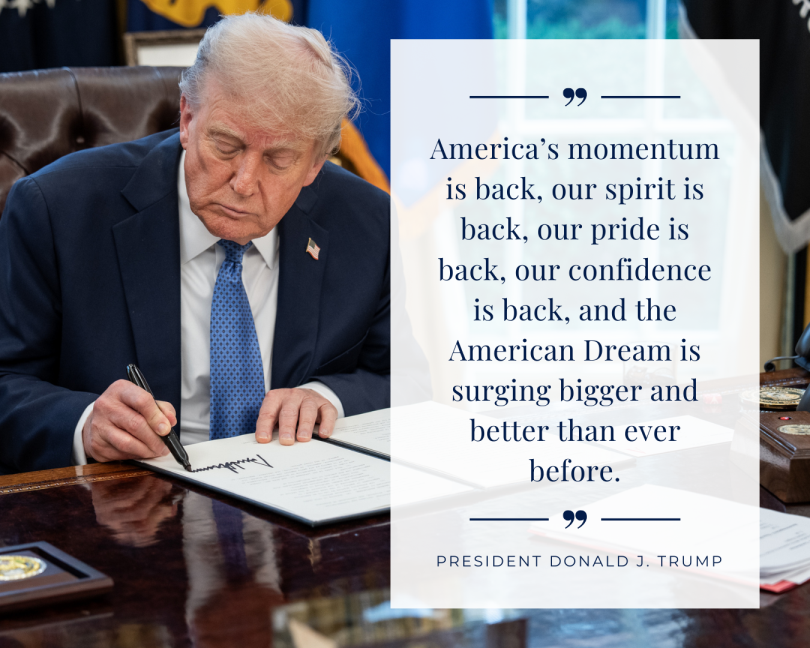 “Together, we unite as one people to honor our most sacred American ideals, celebrate our victories, and reaffirm our solemn mission to make our country greater than ever before.”